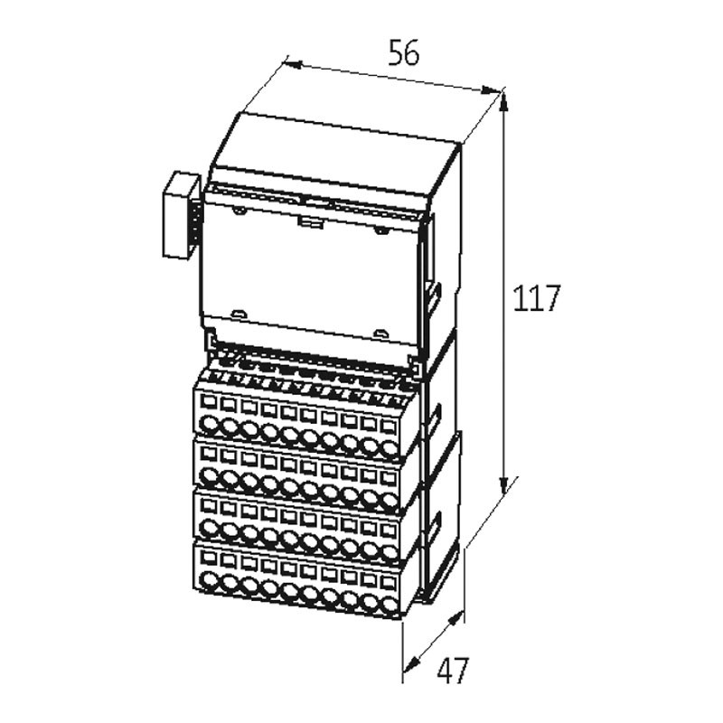 - Entrées E/S : 32× bornes à ressort enfichables, max. 2,5 mm² (max. 12 A)