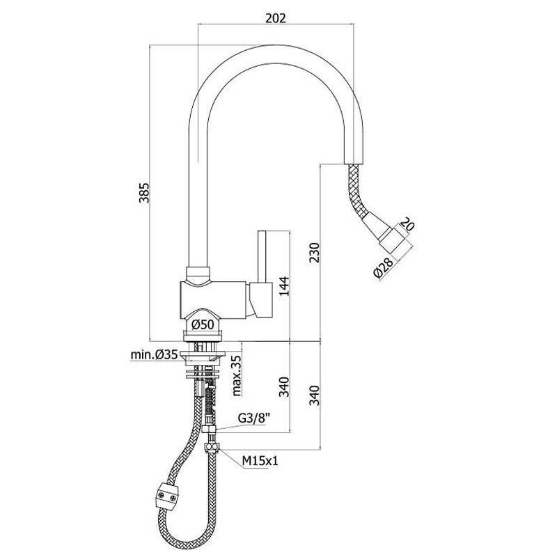 Mitigeur d'évier Paffoni Stick avec douchette extractible, bec pivotant chromé avec les caractéristiques suivantes :