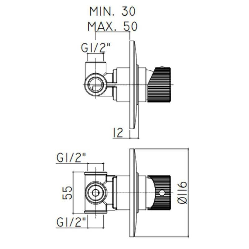 Mitigeur encastré pour douche Paffoni Jo chromé avec les caractéristiques suivantes :