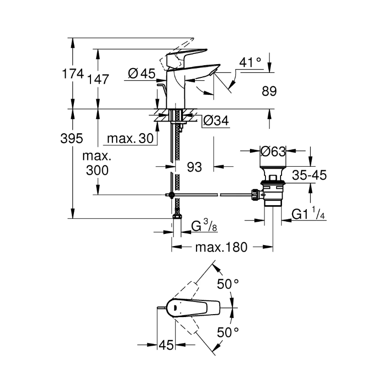 Mitigeur de lavabo Grohe Bauedge taille S monocommande :