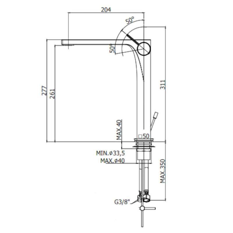 Mitigeur de lavabo prolongé sans vidange (sans bonde) Paffoni Rock chromé avec les caractéristiques suivantes :