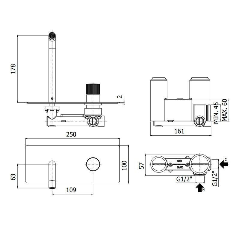 Mitigeur encastré pour lavabo Paffoni Jo chromé avec les caractéristiques suivantes: