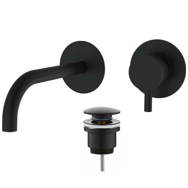 Mitigeur de lavabo mural Teorema Jabil, 2 pièces avec évacuation Click Clack, couleur noir mat.