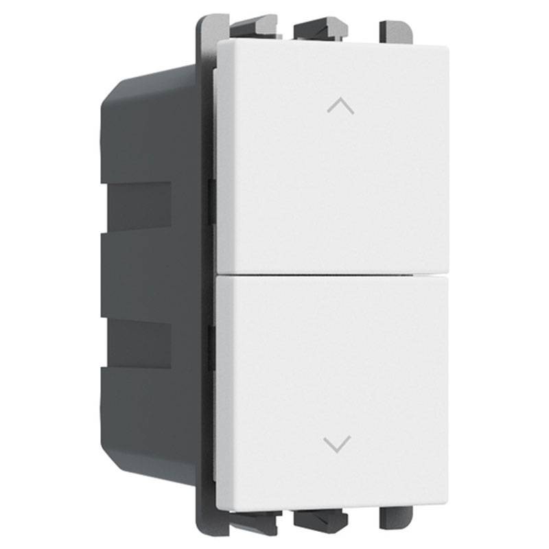 Double bouton Urmet Lybra 27139.B pour volets roulants, verrouillé et à 2 boutons NO superposés, 1 module, 10A 250V~, couleur blanc mat. Sûr, élégant et compact, idéal pour le contrôle moteur stores ou volets roulants.