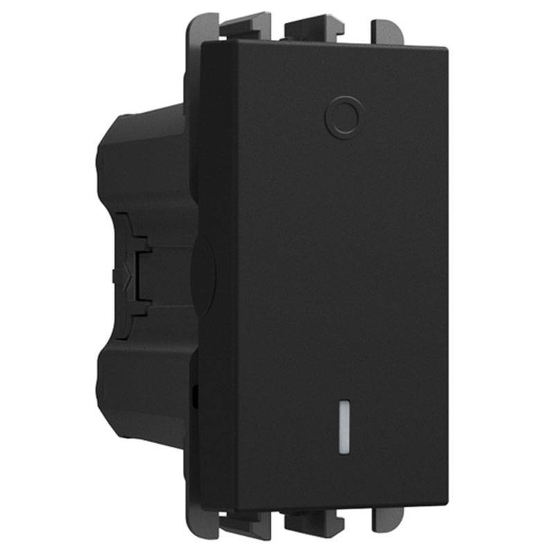 Interrupteur bipolaire Urmet Lybra 27162.N, 2P 16AX, 1 module, couleur noir mat, avec bornes à vis et possibilité de rétroéclairage LED. Idéal pour le contrôle sécurisé des appareils électroménagers et charges élevées.
