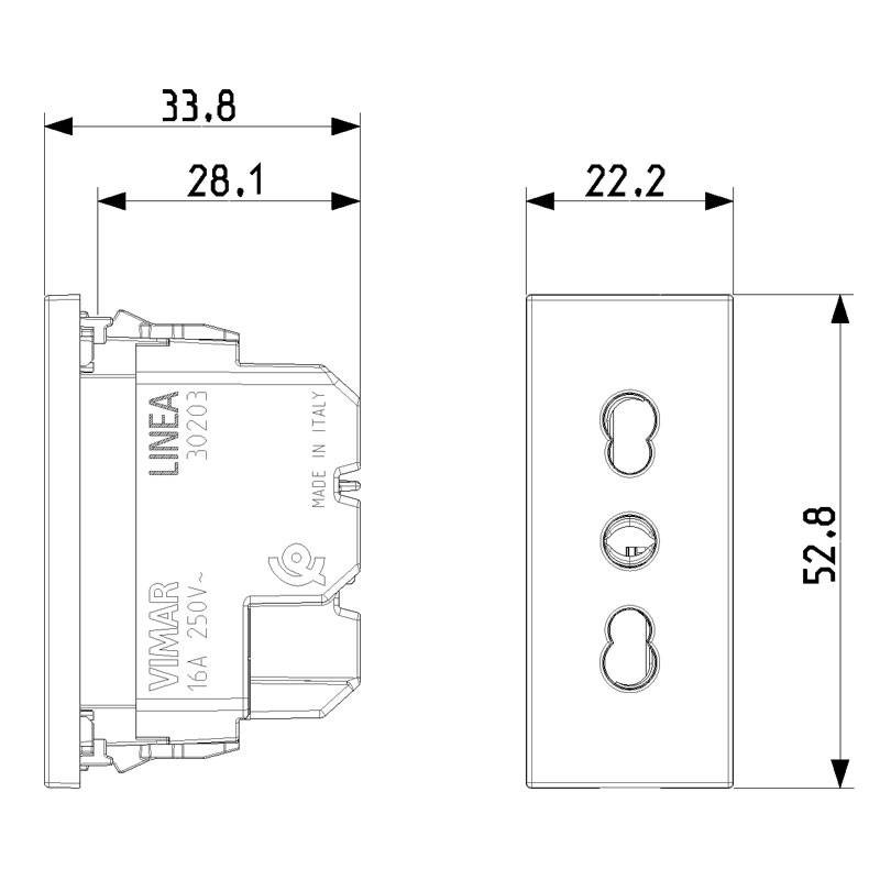 Vimar Linea 16A 2P+E 250 V prise à deux broches, norme italienne type P17/11, 1 module, couleur Noir.