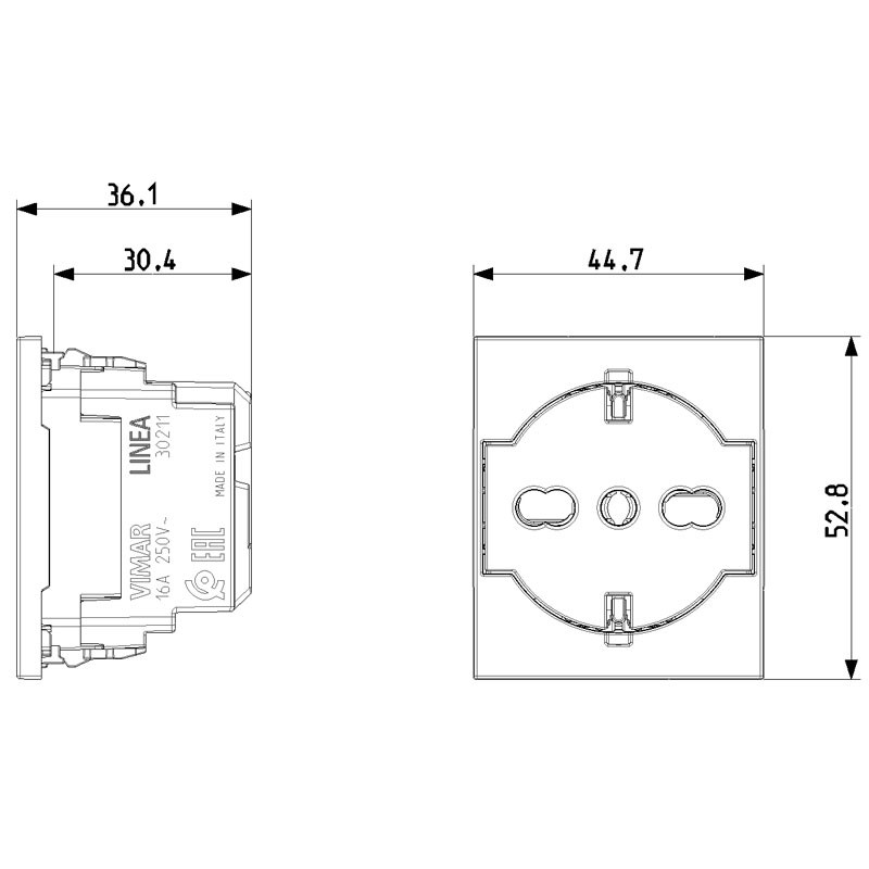 A monter uniquement sur les supports de la série Vimar Linea codes : 30613/30614/30617.