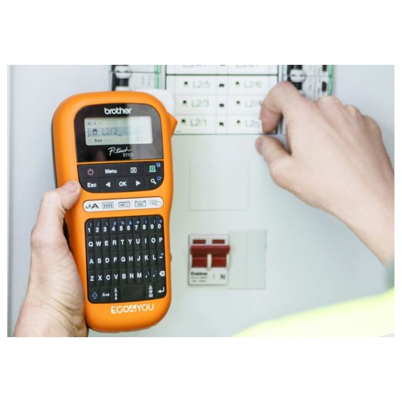Étiqueteuse portable professionnelle pour Câbles Brother QWERTY de 9 à 12 mm, permet de créer facilement et rapidement tous les types d’étiquettes les plus couramment utilisées pour câbles, fils et tableaux de distribution dans le respect maximum des normes électriques du secteur.