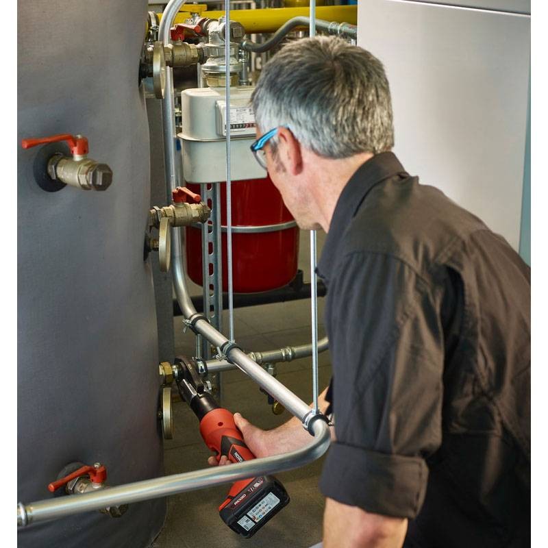 - La RP 219 est équipée de la nouvelle génération de batterie Advanced 18 V Li-Ion et d'un chargeur rapide pour un maximum de presses par charge et aucun temps d'arrêt sur site. Le nouveau chargeur rapide RIDGID est également doté de la fonction unique de charge en voiture de RIDGID, qui permet de charger les batteries dans la voiture ou la camionnette tout en se rendant sur le chantier.