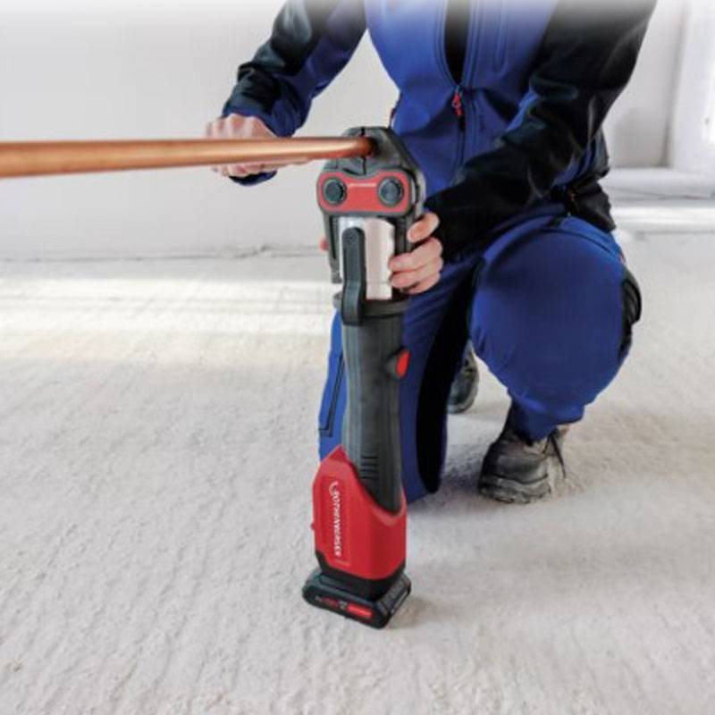 La ROMAX 4000 est idéale pour le pressage conforme au système de raccords métalliques, plastiques et multicouches (MSR) jusqu'à 110 mm. La ROMAX 4000 travaille sur des raccords avec une force de piston de 32-34 kN et effectue un cycle de pressage complet en seulement 5 secondes.