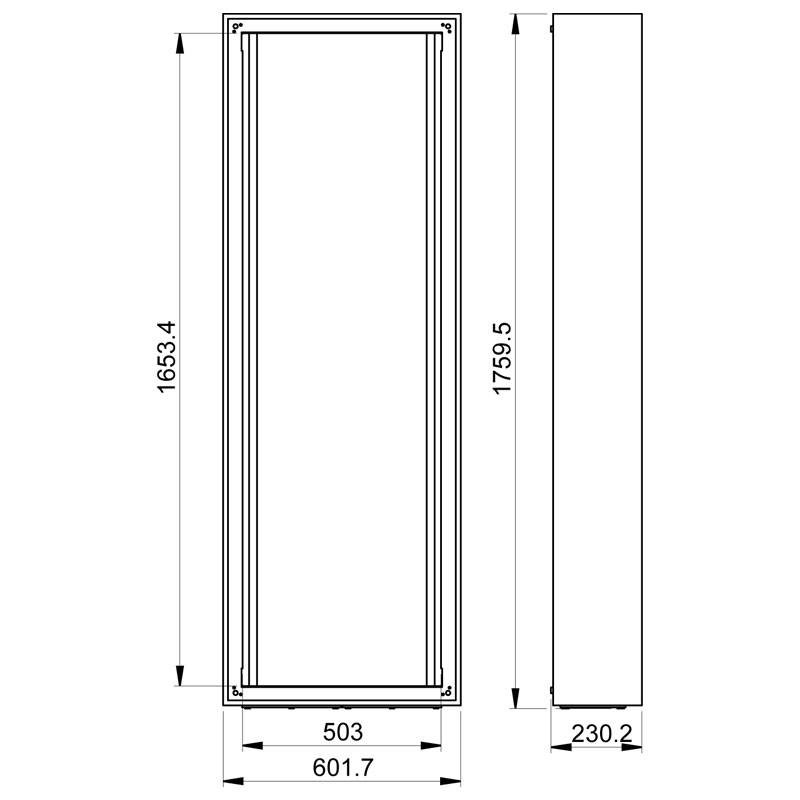 - Dimensions et poids : hauteur 1800 mm avec socle - largeur 575 mm - profondeur 260 mm - poids : 31,2 kg