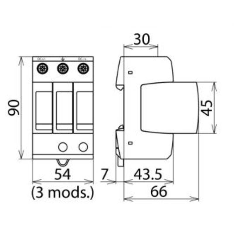 - Courant de décharge à impulsion nominal (8/20 µs) (DC+/DC-) --> PE (In ) : 10 kA