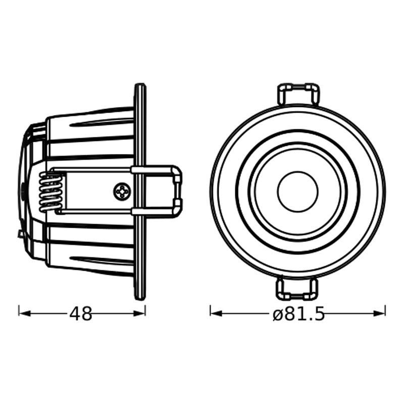 Le driver fourni est gradable en coupe de phase, compatible avec la plupart des gradateurs du marché. L'anneau frontal blanc est déjà installé, mais il est possible de choisir d'autres anneaux de recouvrement (ronds ou carrés, de différentes couleurs) pour personnaliser l'esthétique. Grâce à sa faible profondeur d'encastrement (48 mm), elle peut également être installée dans des espaces réduits.