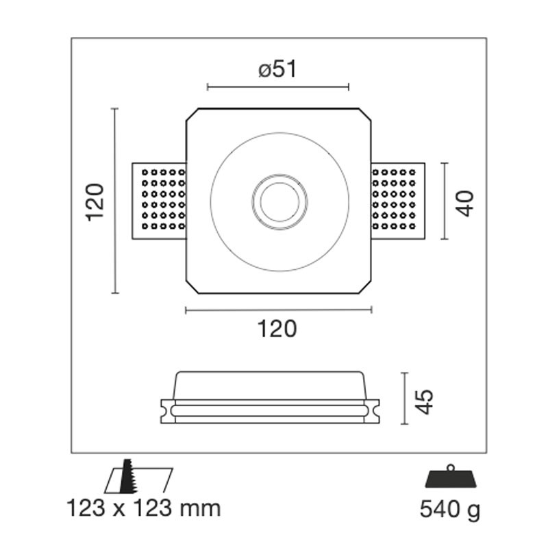 Spot carré en plâtre Century Jessy encastrable Blanc JESSY-SR120