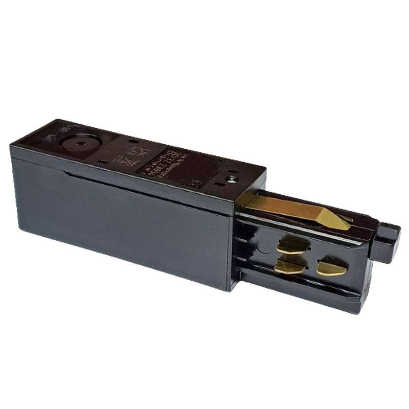 Tête de polarité gauche/terre droite, alimentation des rails Ilmas, couleur noire, classe de protection IP20.