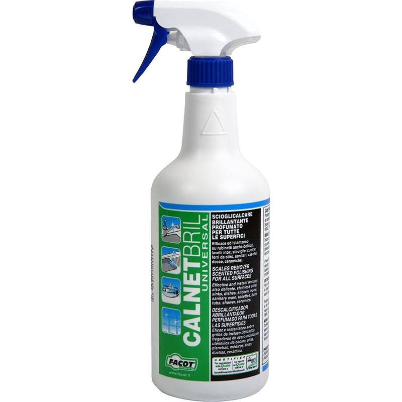 Dissolvant anti-calcaire Facot Calnet Bril Universal produit désinfectant et de rinçage, convient pour les robinets et la vaisselle flacon 700 ml + pulvérisateur.