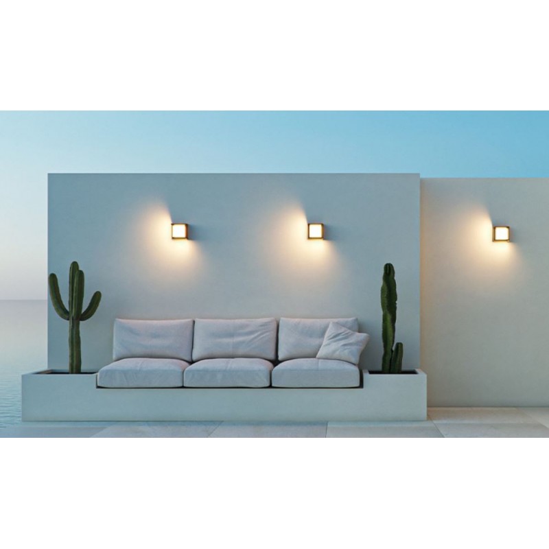 Blis est un projecteur extérieur à LED, mural ou au sol, d'une puissance de 15 watts, de format carré, en polycarbonate avec une finition blanche.