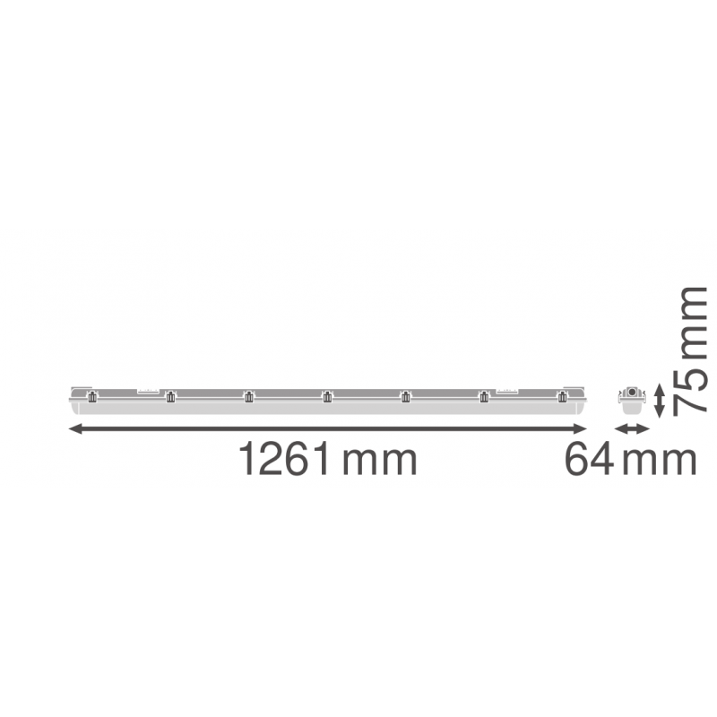 Plafonnier étanche vide avec boîtier pour Tubes LED T8 Ledvance Osram DP HOUSING avec les caractéristiques suivantes :