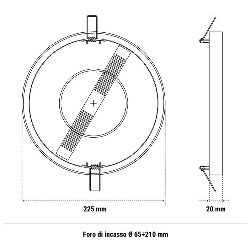 Corps blanc compact : Ø 225 mm, H 20 mm, IP20, IK05.