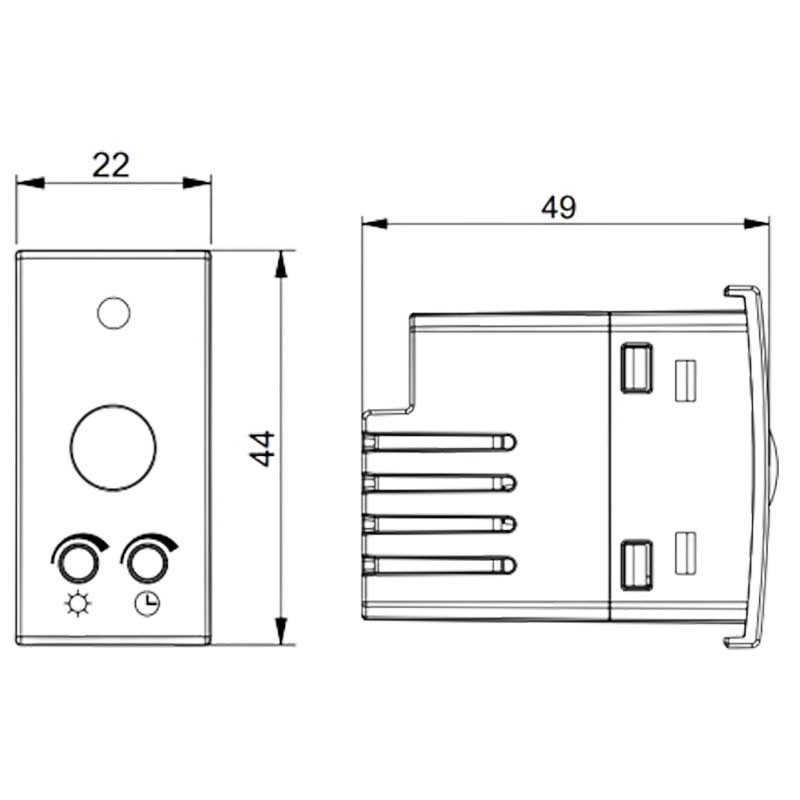 Il capte les mouvements qui se produisent dans son rayon d'action et active la charge connectée (par exemple, le système d'éclairage) pendant la période de temps définie et seulement si le niveau de luminosité tombe en dessous du seuil prédéfini. La durée et le niveau de luminosité peuvent être réglés à l'aide des deux contrôleurs situés à l'avant de l'appareil. Sens IR est petit et compact pour être installé discrètement dans n'importe quelle pièce de la maison grâce à son faible encombrement. Il est fourni avec des adaptateurs qui permettent de l'installer avec les plaques de la série civile principale.