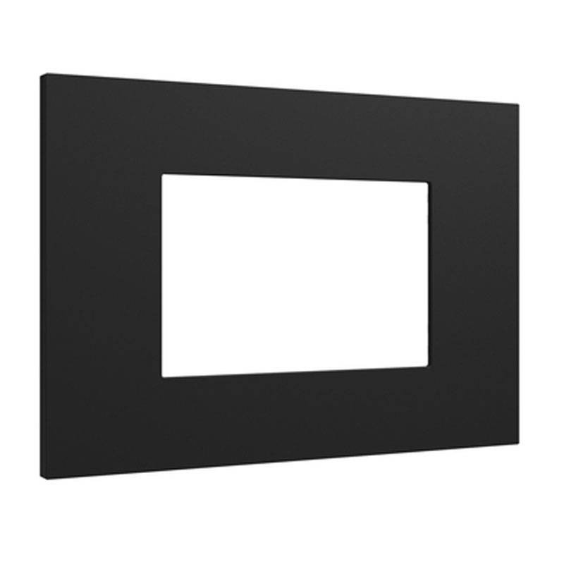 Placca Urmet Lybra 27803.NR de 3 modules, couleur noire, en technopolymère résistant. Design minimaliste et élégant, parfaitement compatible avec le support 27703 pour installations civiles et modernes.