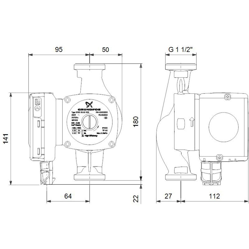 Circulateur à rotor noyé Grundfos UPS2 25-80 180 pour installations de chauffage 1 1/2 pouces 180mm 98707853