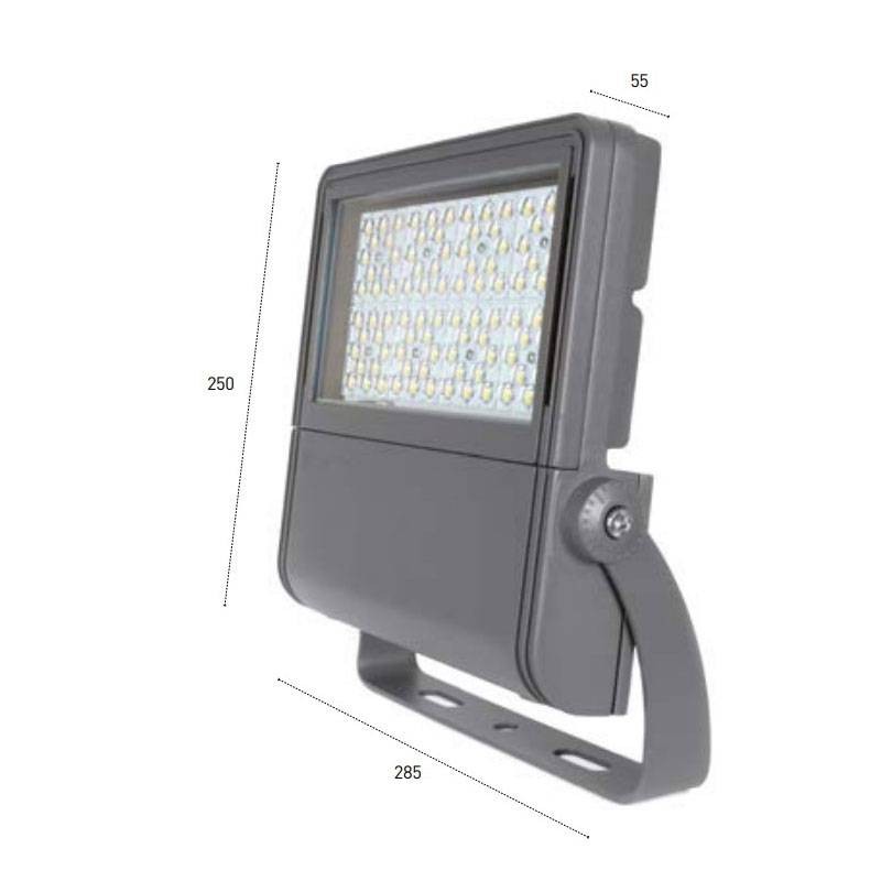Projecteur d'extérieur à haut rendement avec système optique multi-puces pour améliorer la distribution de la lumière et garantir une grande fiabilité, corps à résistance aérodynamique améliorée, passivé et peint avec une peinture époxy à haute résistance, quincaillerie en acier inoxydable et système goniométrique pour un réglage précis du faisceau lumineux. Conforme aux cames d'éclairage public.