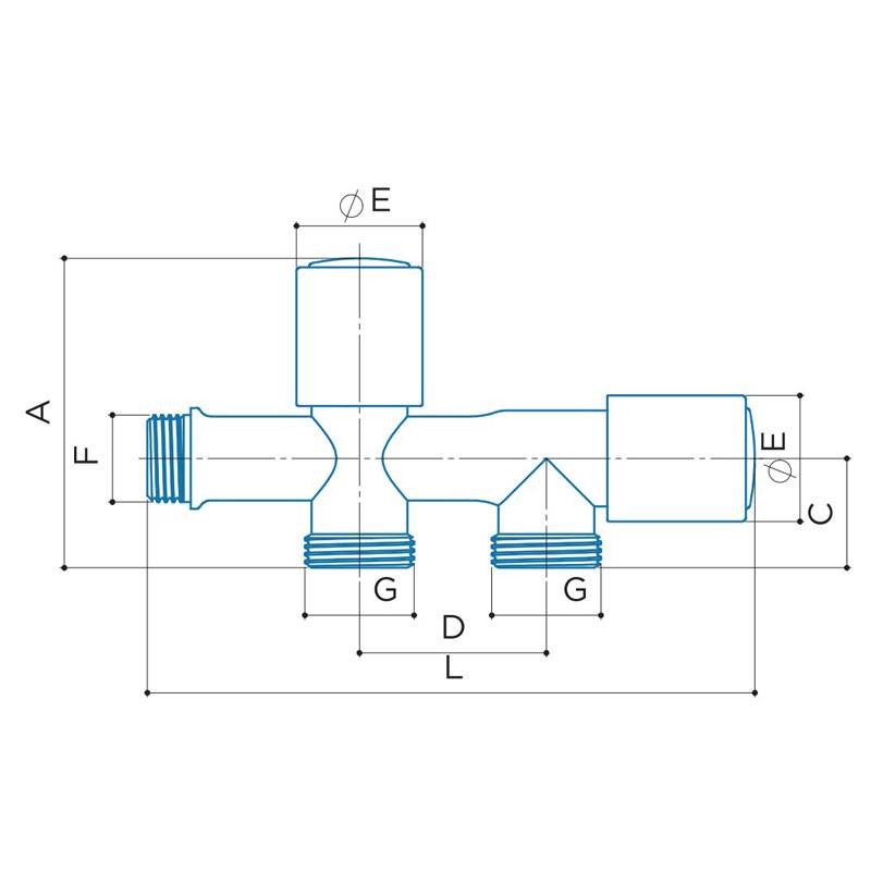 Robinet Luxor à double sortie à tête à clapet avec connexion pour lave-linge et lave-vaisselle avec les caractéristiques suivantes :
