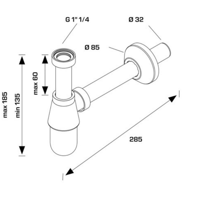 Siphon bouteille Bonomini pour lavabo avec les caractéristiques suivantes :