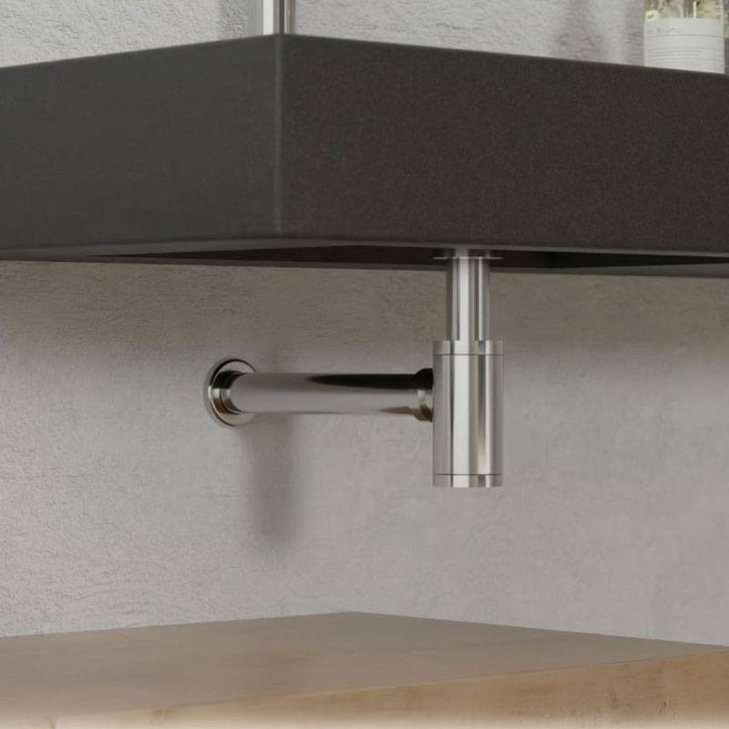 Siphon Sphera évacuation lavabo metal en chromé avec joint noir.