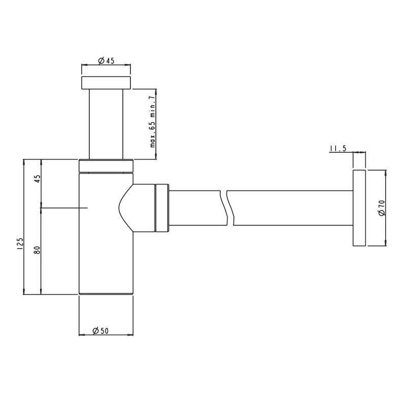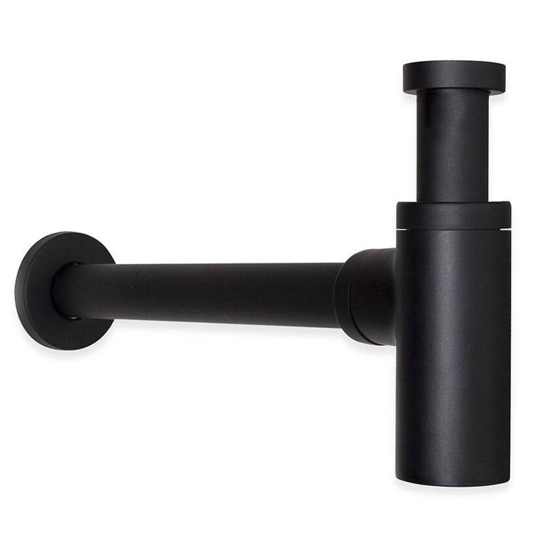 Sphera Siphon évacuation lavabo rond noir mat avec joint noir.