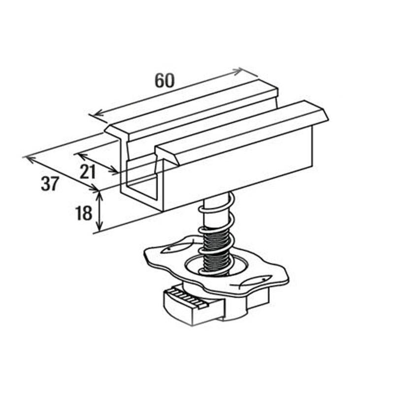 Stabilité : L'élément plastique intégré empêche la pince de glisser dans le profilé et la maintient stable jusqu'à ce qu'elle soit serrée.