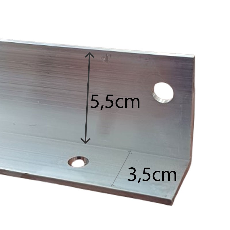 Triangle pour la fixation des panneaux photovoltaïques Teknomega référence FVT-TRG-R-EVO angle 30-35-40-45 degrés, matériau aluminium. Épaisseur intérieure haute 5,5cm, épaisseur intérieure basse 3,5cm.