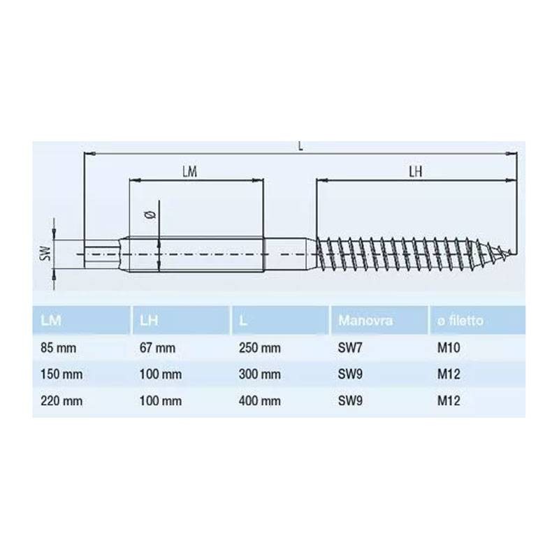 Vis à double filetage pour photovoltaïque Orbis V-33 M12 longueur 350mm OB620212