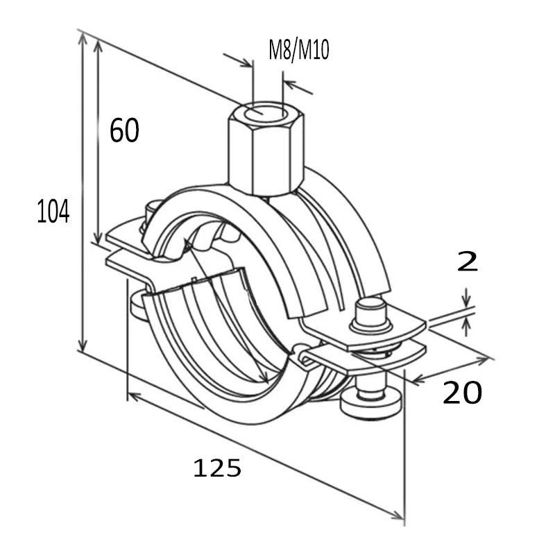 Grâce au système à double vis, le collier s'adapte précisément au diamètre extérieur du tuyau, ce qui simplifie l'installation. Le filetage combiné M8/M10 permet une plus grande flexibilité dans l'installation, en s'adaptant aux différentes exigences de conception.