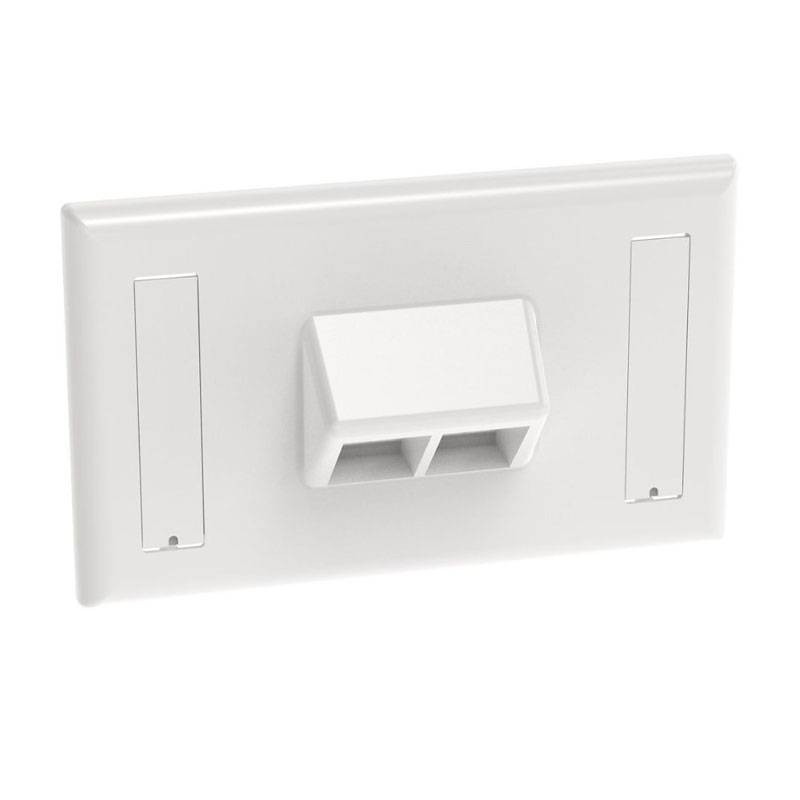Le plastron NetKey accepte deux modules keystone. Le plastron est simple et se monte horizontalement sur une ouverture standard NEMA simple. Le plastron comprend une pochette d'étiquettes pour faciliter l'identification et est de couleur blanc arctique.