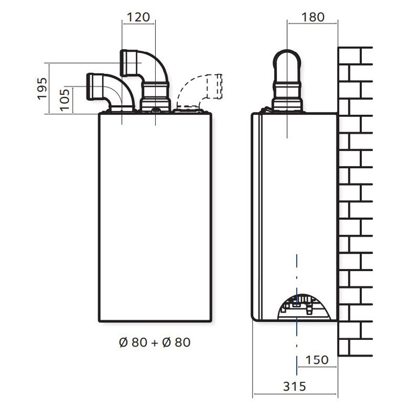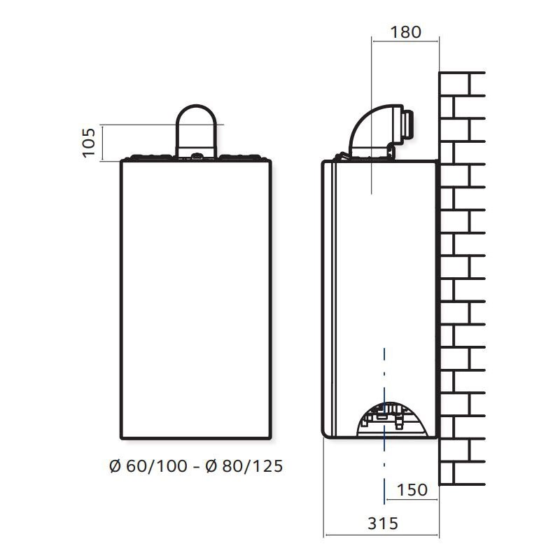 Kit coaxial diamètre 100/60 pour sortie fumée inclus (code 3318073).