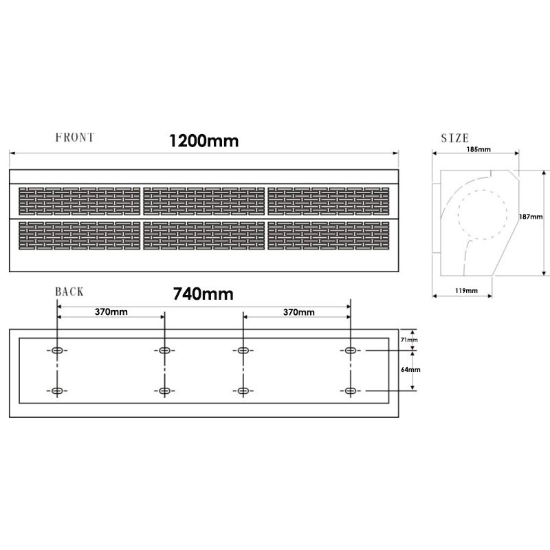 | Dimensions (L x P x H) | 1200 x 185 x 187 mm |