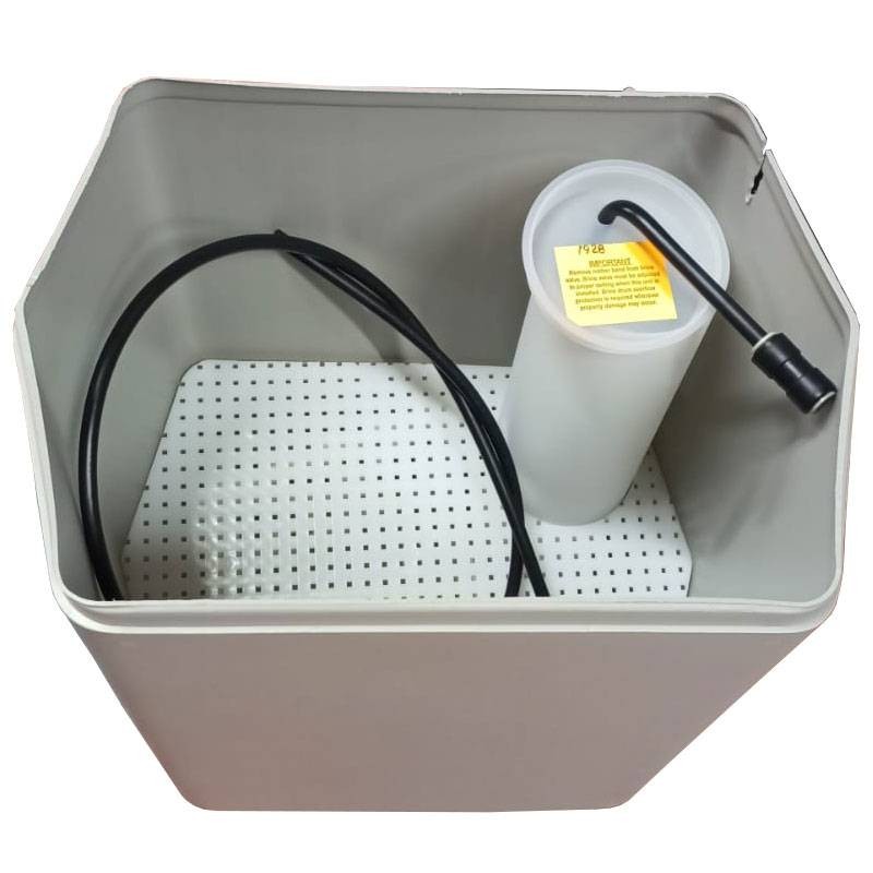 Livré en standard avec un bac à saumure rectangulaire (51 x 30 x 41 cm).