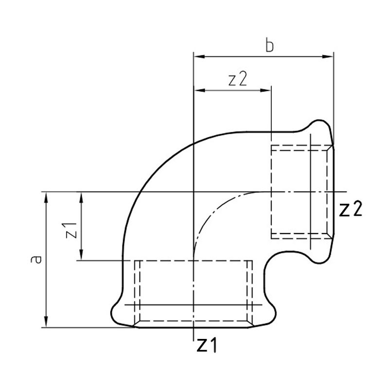 Raccord coudé à 90 degrés fileté en fonte Atusa avec les caractéristiques suivantes :