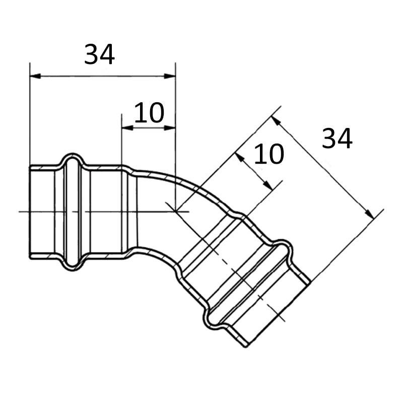 Coude à 45 degrés IBP Banninger, raccord à sertir pour la réfrigération et la climatisation. Raccord fiable et durable, idéal pour les canalisations en cuivre, avec les caractéristiques suivantes :