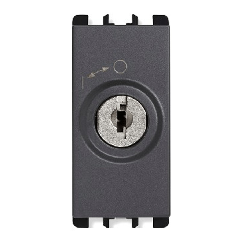 Interrupteur à clés différents 2P 10A Urmet Simon Nea, clé extractible seulement en position "0", bornes à vis, 1 module couleur gris anthracite. À appliquer sur les supports 10702N.G,10703N,10704N,10706N,10707.