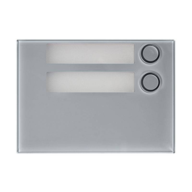 Façade Urmet Alpha avec deux boutons d'appel, pour montage sur le module de boutons 1168/4. Pour le système 2 Voice uniquement. Couleur grise. Fabriqué en matière thermoplastique avec traitement anti-UV. Dimensions 124 x 90 mm.