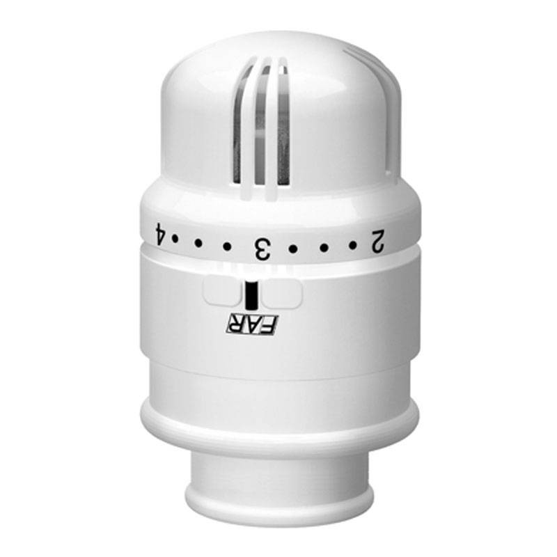Le contrôle thermostatique FAR régule, par l'intermédiaire d'un capteur interne de liquide sensible aux variations de température, l'ouverture et la fermeture de la vanne sur laquelle il est installé, équilibrant ainsi la température à l'intérieur de la pièce à chauffer.
