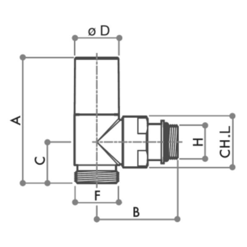 Kit thermostatique à équerre complète Luxor KT2059/A, pour raccordement aux radiateurs décoratifs avec les caractéristiques suivantes :