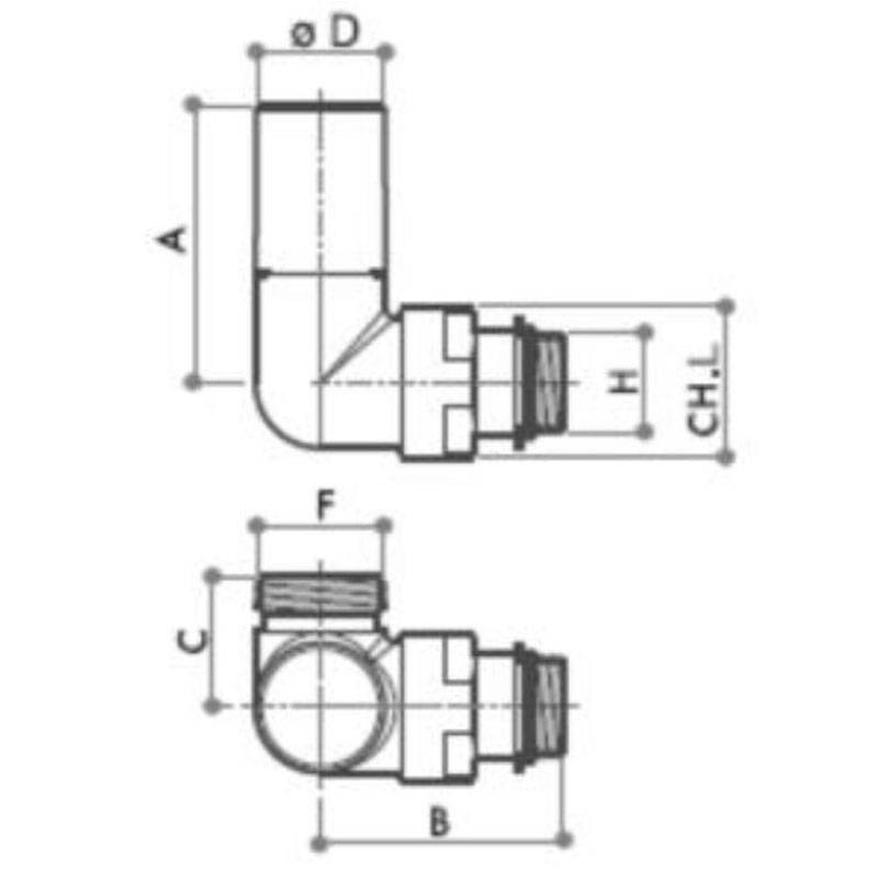 Kit thermostatique à équerre complète Luxor Série 50 KT 2073/A, pour raccordement aux radiateurs décoratifs avec les caractéristiques suivantes :