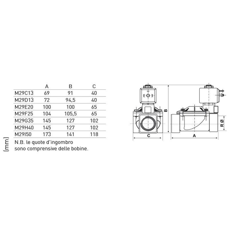Les corps de vanne M29 montent uniquement la bobine IM29 fournie séparément du corps de vanne (code IM29F).