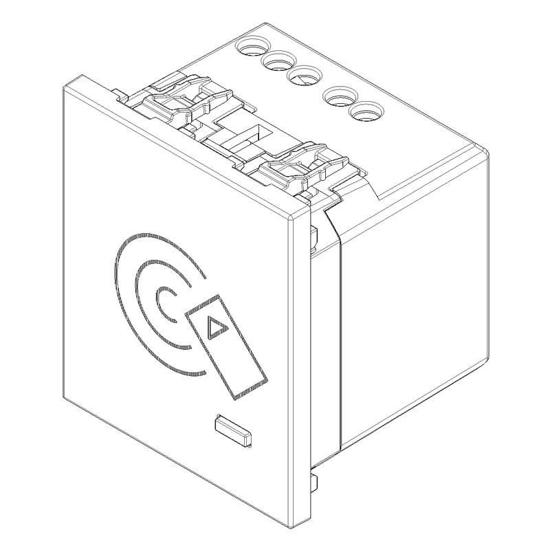 - Bornes : - L et N pour l'alimentation -- Sortie relais 16 A 240 V~ C-NO (NO SELV) -- Entrée pour la signalisation DND (Do Not Disturb) via la LED frontale (non isolée)