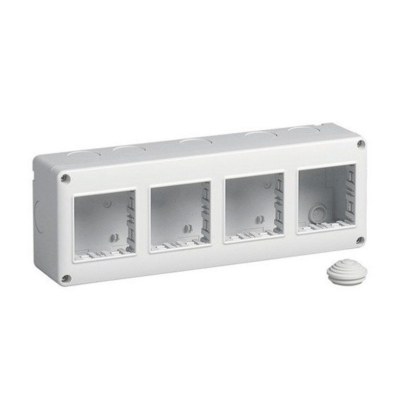 Boîtier mural IP40, 8 (2+2+2) modules compatibles avec les séries Eikon, Arké et Plana, pour des luminaires pouvant être accrochés horizontalement et verticalement.