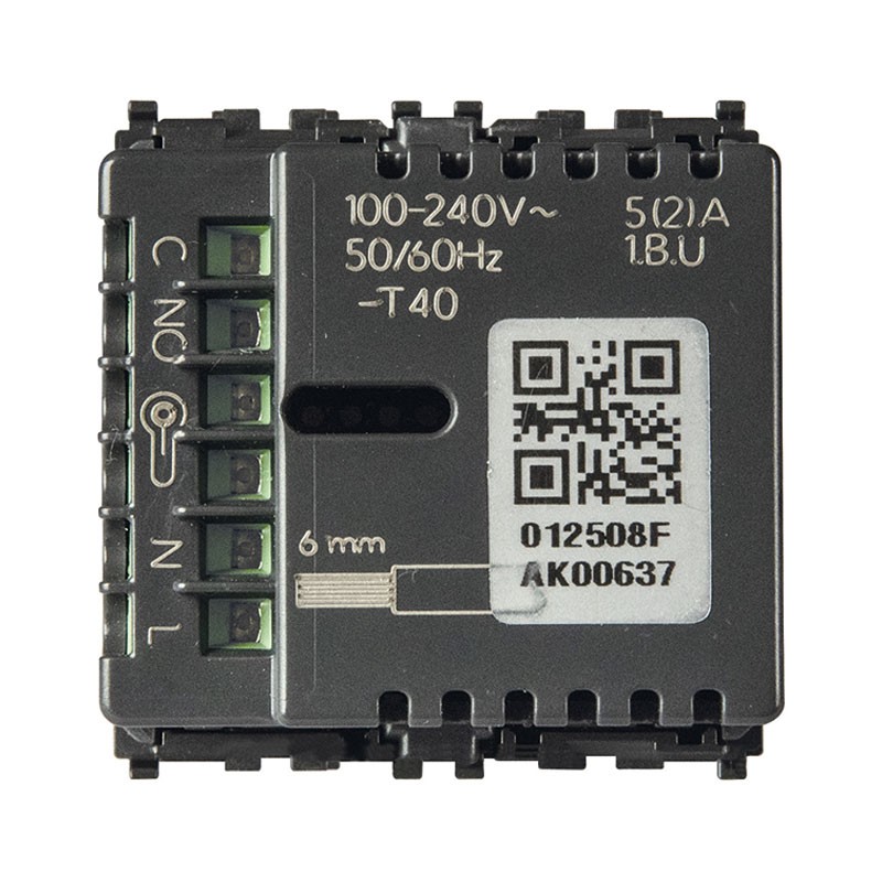 - Bornes : - 2 bornes (L et N) pour la ligne et le neutre - 2 pour la sortie relais